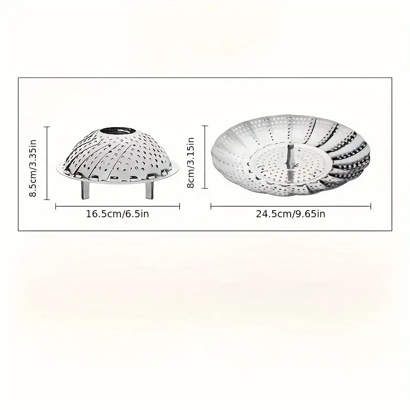 - This Stainless Steel Steamer Basket has a foldable design for easy storage and carrying. Compact size for easy storage.