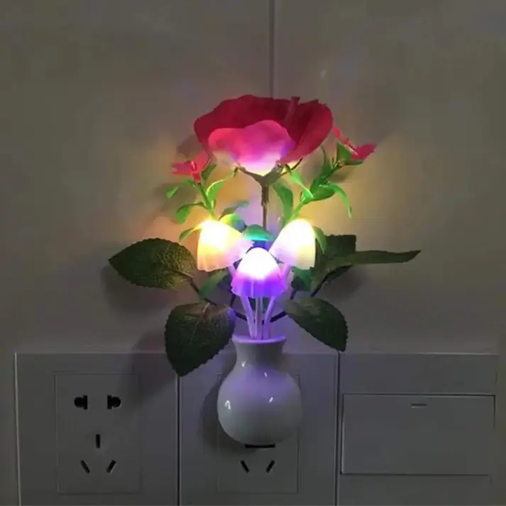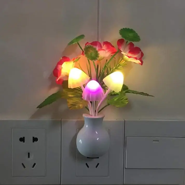 • Package Includes: 1x LED mushroom romantic colorful sensor plug-in night light
