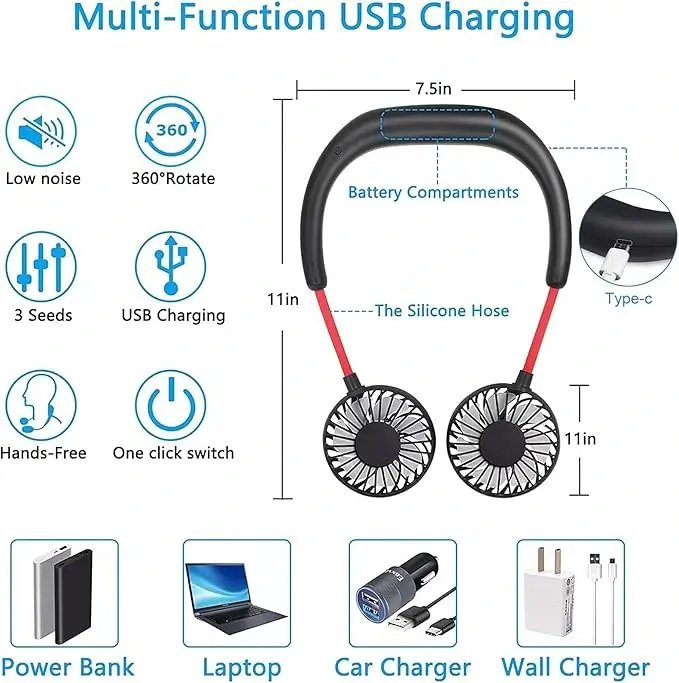 - Mini USB Colar Neck Fan Fan Wearable for Home Office Traveling Wearable Fan.
