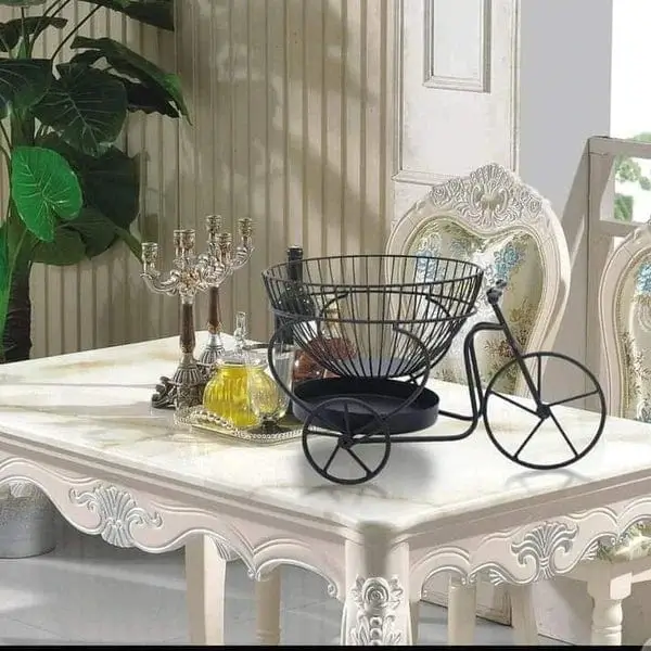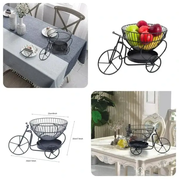 - This unique tricycle-design fruit basket is the perfect way to add a touch of fun and whimsy to your kitchen or dining Room.